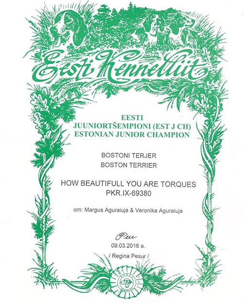Exellent 1, CAC, BOS = Estonian Champion