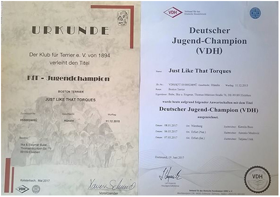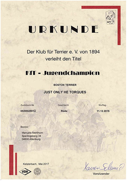 Deutscher Jugend-Champion (VDH und KfT) JUST ONLY HE Torques